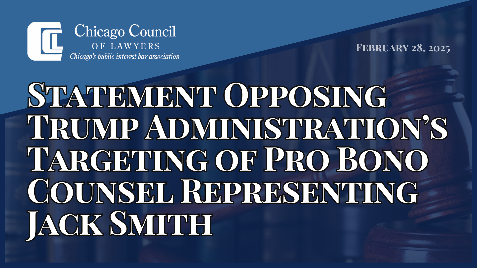 The Chicago Council of Lawyers, Chicago’s public interest bar association, opposes the confirmation of Thomas Kirsch, the United States Attorney for the Northern District of Indiana, to a seat on the Federal Court of Appeals [...]