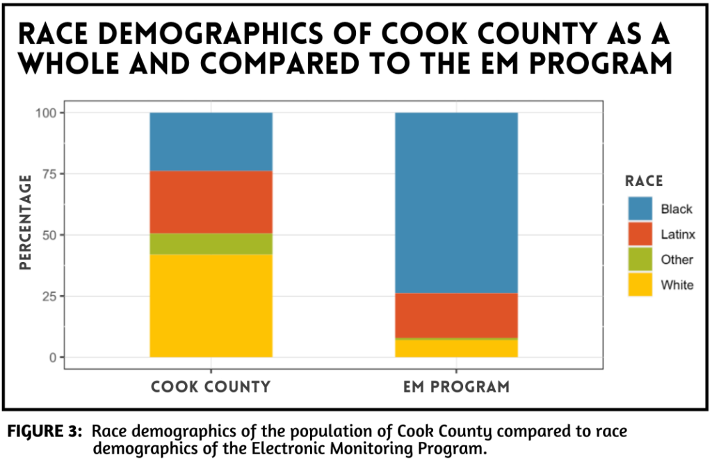 It is common knowledge that the criminal legal system harms Black communities at a massively disproportionate level. Electronic monitoring is another facet of this system that mostly impacts Black – and to a lesser extent Latinx – families and communities in and around Cook County and throughout the country.