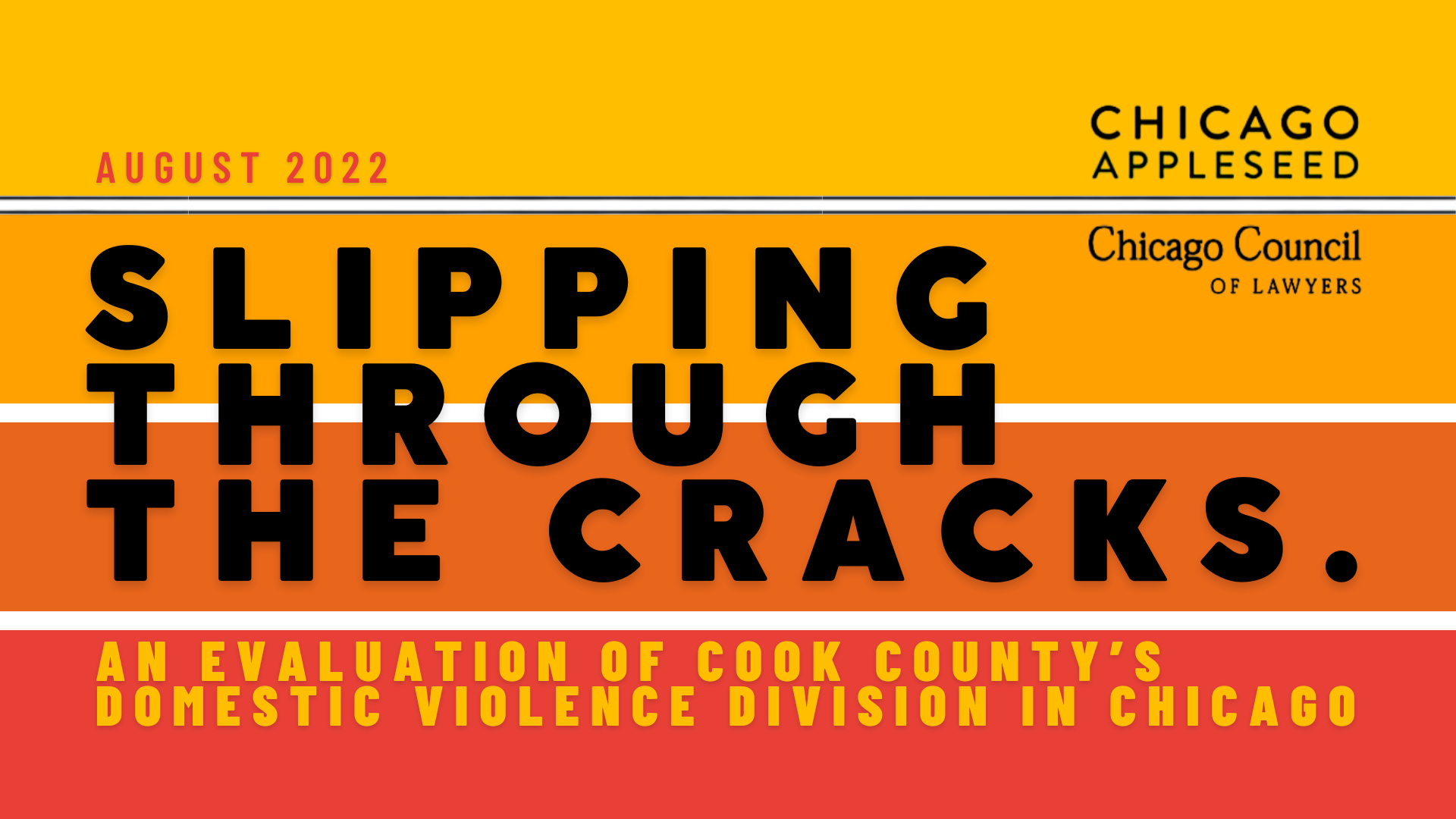 Since early 2020, Chicago Appleseed Center for Fair Courts and the Chicago Council of Lawyers have been evaluating the Domestic Violence Division of the Circuit Court of Cook County, with a specific focus on the Domestic Violence Courthouse at 555 West Harrison in Chicago. Today, we release our findings in our report, “Slipping through the Cracks” – An Evaluation of Cook County’s Domestic Violence Division in Chicago.