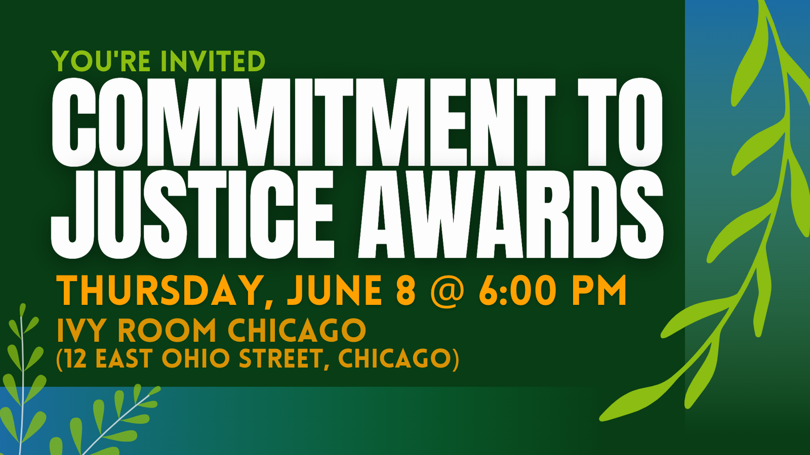 Our Collaboration for Justice is thrilled to announce that on Thursday, June 8, 2023, we will gather at the Ivy Room in Chicago for our Commitment to Justice Awards.